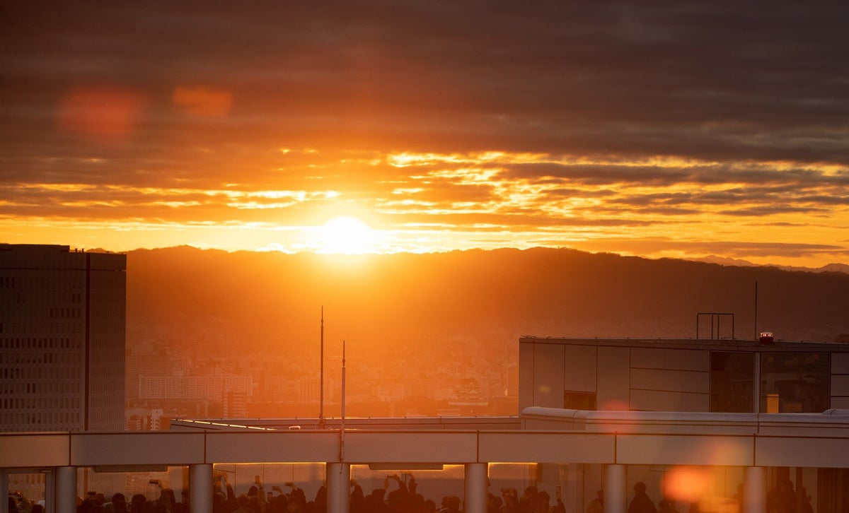 梅田スカイビル・空中庭園展望台では、2026年1月1日(木)に「初日の出特別営業」を実施します。限定250名様、Web先着販売となりますので、ぜひこの機会にご参加ください。