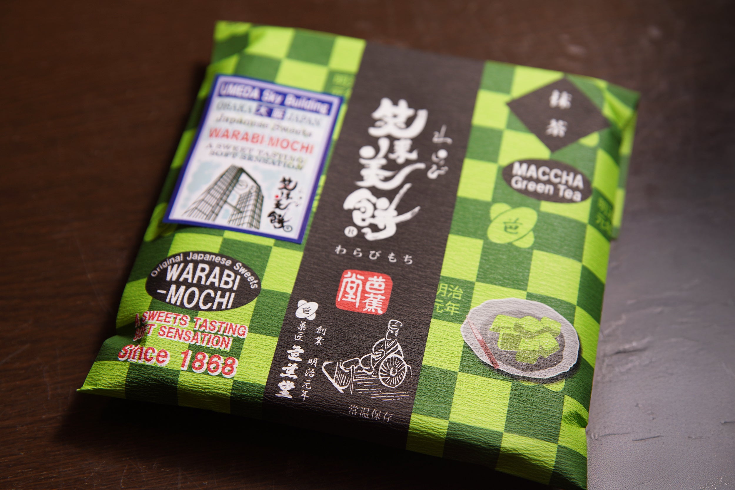 人気のわらび餅の中から、上品な抹茶と黒豆きな粉をブレンドした「抹茶きな粉」をご用意しました。