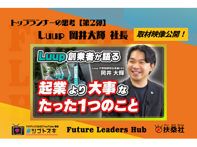 「企業の情報と印象をデザインする」をコンセプトに掲げ、メディアとWEBとオフラインを融合させたマーケティング戦略を提供する、株式会社アナログPR(本社:東京都港区、代表取締役:松浦啓介)は、弊社が企画運営に携わる、株式会社扶桑社(本社:東京都港区、代表取締役社長:秋尾弘史)のZ世代向け新経済メディア「Future Leaders Hub」が、フジテレビ公式YouTubeチャンネル「#シゴトズキ」制作のもと、「トップランナーの思考」第2弾として、株式会社Luup代表取締役CEO岡井 大輝氏への取材映像を公開したことをお知らせいたします。本企画は、経営者の戦略的思考や経営哲学を映像でZ世代に届け、次世代リーダーの学びにつなげることを目的としています。