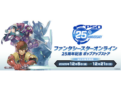 株式会社セガは、『ファンタシースターオンライン』(PSO)のリリースから25周年を記念した「ファンタシースターオンライン25周年記念 ポップアップストア」(運営:株式会社Lam)の第二弾を、AKIBAカルチャーズZONE Culpop[カルポップ]にて2025年12月5日(金)から12月21日(日)の期間限定で開催します。