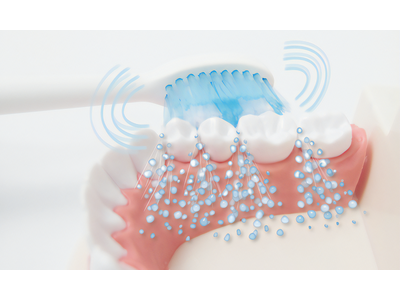 細かな振動で物理的な摩擦は少ないながらも、汚れを浮かせて除去。歯の裏側など磨きにくい部分にもマイクロバブルが入り込み、口内を清潔に保ちます。