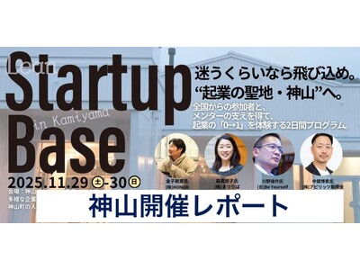 2025年11月29、30日の週末2日間、(株)まつりば(東京都渋谷区、代表取締役森真悠子)は、徳島県神山町にて、今年4回目の開催にして初のスポンサー3社を迎えた「起業体験プログラム Lean StartupBase」を運営しました。札幌・福岡・東京から集まった次世代の若手に加え、神山高専・徳島大学・阿南工業高専の学生が参加。神山町が長年培ってきた「創造的過疎」の精神と、自然・アート・テクノロジーが融合する地域環境の中で、参加者は新規事業創出のプロセス「Lean Startup」を体験しました。