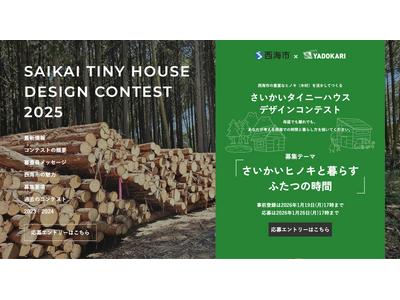 長崎県西海市(市長:瀬川 光之、以下「西海市」)は、YADOKARI株式会社(本社:神奈川県横浜市/代表取締役 上杉勢太・さわだいっせい、以下「YADOKARI」)の協力の下、西海市による西海市産のヒノキを活用したまちづくりの一環として「さいかいタイニーハウスデザインコンテスト2025」(以下、本コンテストという)を第三回目として開催いたします。YADOKARIは本コンテストの企画・運営に携わっております。