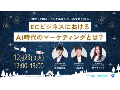 TechSuite株式会社(テックスイート/代表取締役: 畠山夏輝)は、2025年12月9日(火)に共催ウェビナー「~SEO・CRM・インフルエンサーのプロが語る~ECビジネスにおけるAI時代のマーケティングとは?」を開催します。