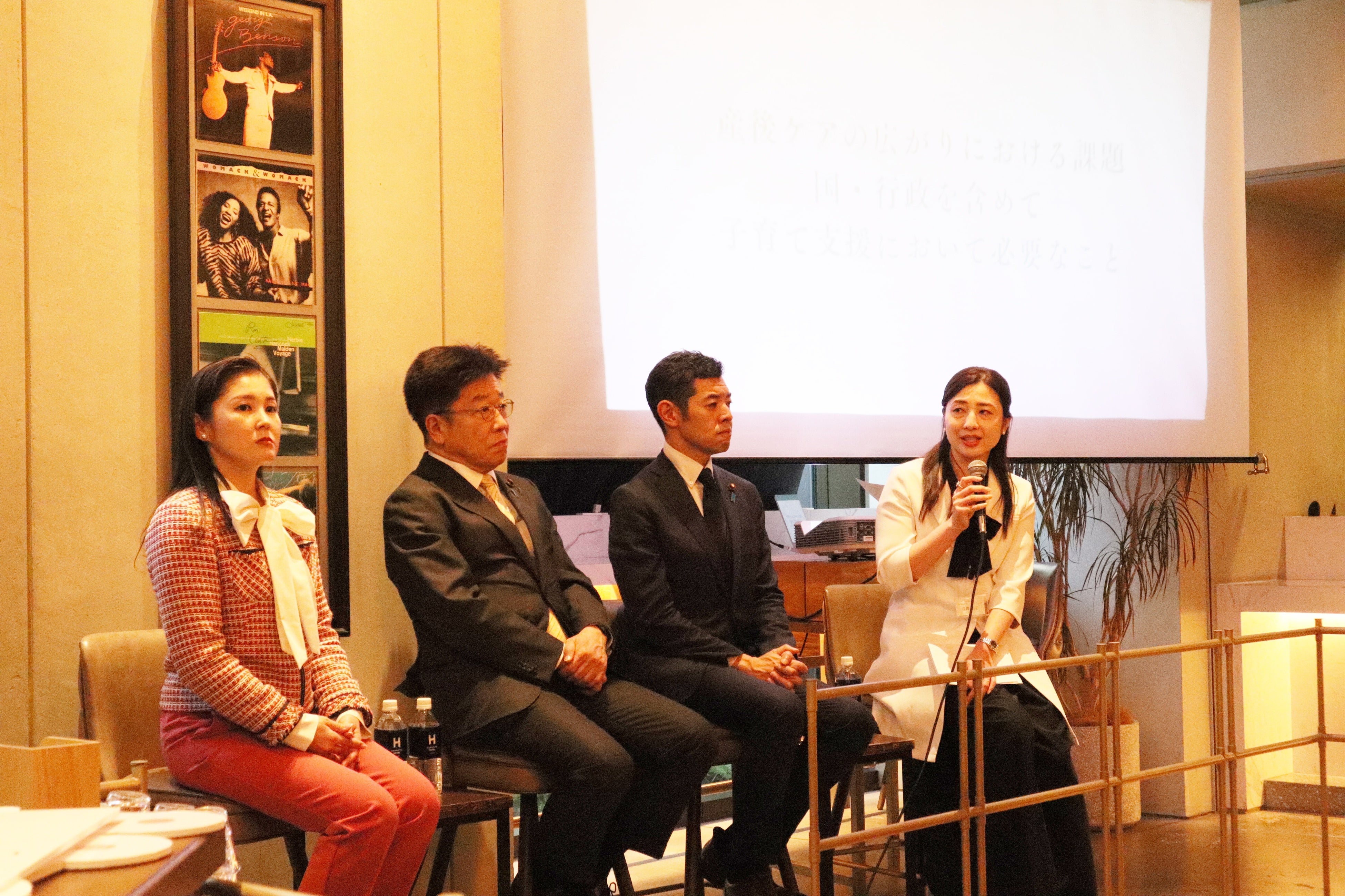 衆議院議員加藤勝信氏、環境副大臣辻清人氏、日本橋人形町ブルジョンウィメンズクリニック院長深澤 祐子氏と産後ケアの広がりについてトークセッションを実施