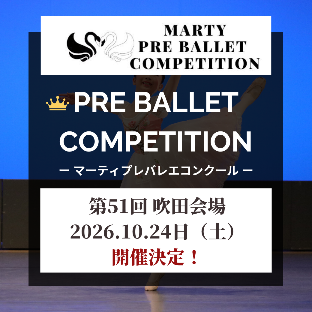 2026.10.24(土)、吹田にてVol.51マーティプレバレエコンクール「マーティプレバレエコンクール・吹田大会」が開催されることが決定しました。