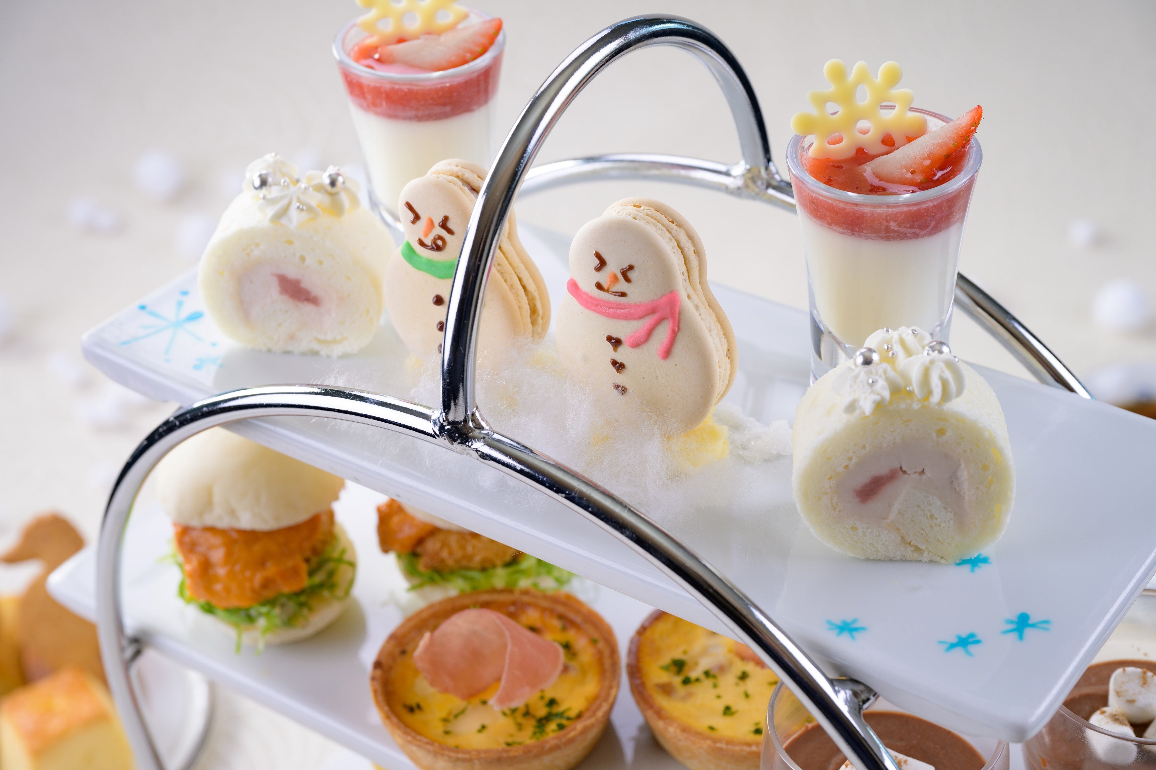 鳥羽国際ホテルのアフタヌーンティーは、その時期ごとに異なる趣向を凝らしたメニューが魅力で、多くのゲストから高い評価をいただいております。1、2月は、テーマを「雪だるまからの贈り物」にして、パンナコッタやロールケーキで表現した雪景色の中で、雪だるまが楽しむ様子を想像しながら、鳥羽国際ホテル自慢の伊勢海老ビスクスープをソースにしたクリームコロッケのミニバーガー、あおさ豚の生ハムチップが添えられたキッシュなど、多彩なスイーツやセイボリーを取り揃えております。また、英国式アフタヌーンティーでおなじみのスコーンには、チョコレートやストロベリーが入ったスコーンなど冬の訪れを演出しています。