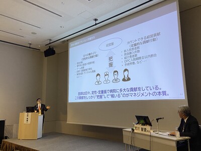 講演では、2024年度診療報酬改定、医師の働き方改革、地域医療構想などの外部環境を踏まえ、 病院が直面する“高回転・高稼働”時代に求められる医師マネジメントについて解説しました。