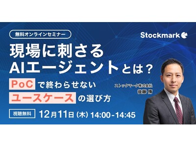 あらゆるデータを構造化し企業の資産に変える『SAT』を提供するストックマーク株式会社(以下、「当社」)はオンラインセミナー『 現場に刺さるAIエージェントとは? ― PoCで終わらせないユースケースの選び方』を12月11日(木) に開催致します。