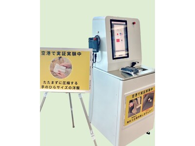 さらに、空港に「衣類専用自動圧縮機」を導入することで、スーツケースや衣類の不法投棄問題解決の一助になるとも考えています。