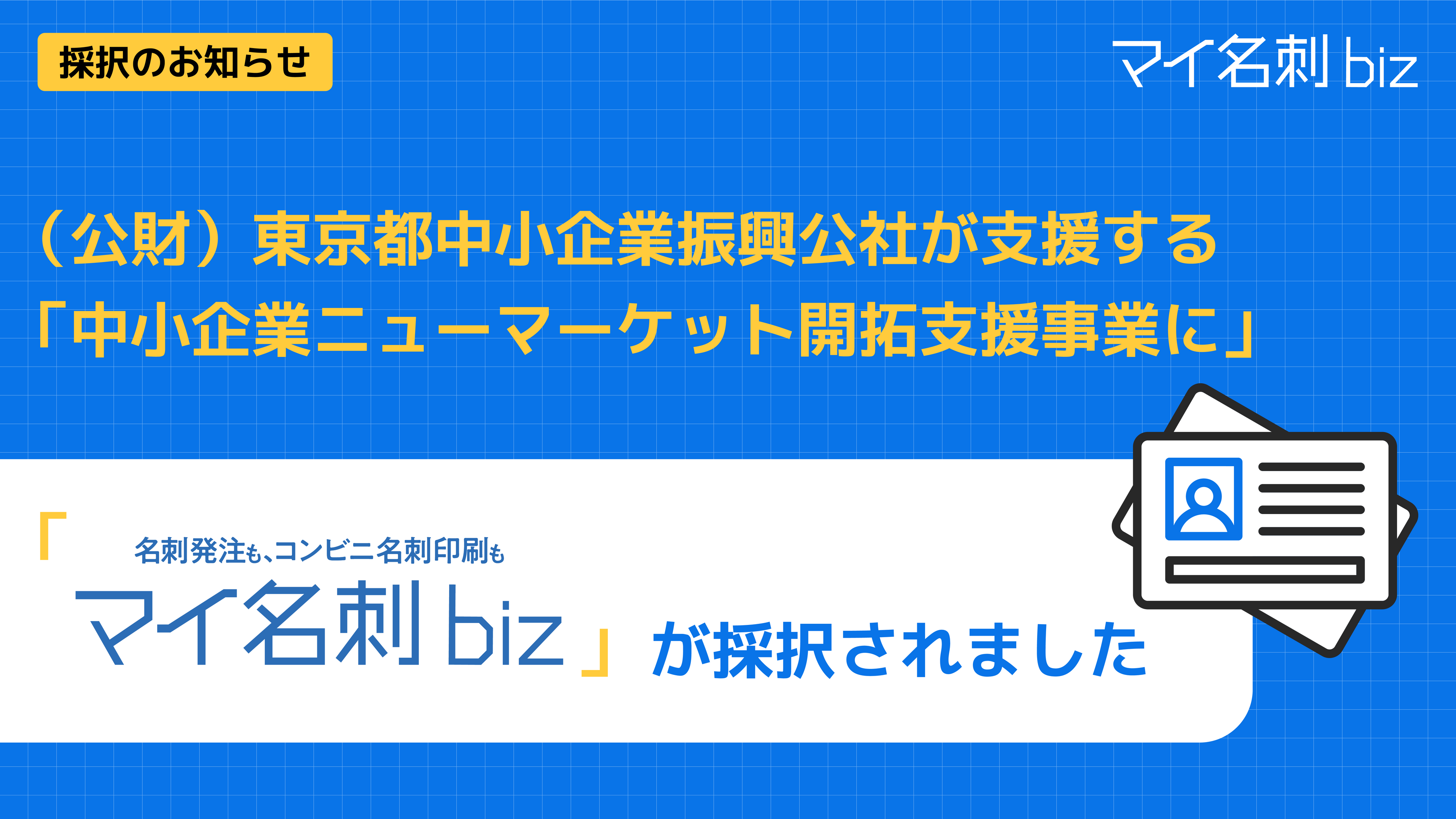 「名刺業務をテクノロジーでスマートに変えていく」をテーマに掲げる株式会社サムライソード(本社:東京都豊島区、代表取締役:比企 良公)が、開発・提供する法人向け名刺発注サービス『マイ名刺 biz』は(公財)東京都中小企業振興公社(以下、公社)が実施している中小企業ニューマーケット開拓支援事業の支援対象製品に採択されました。