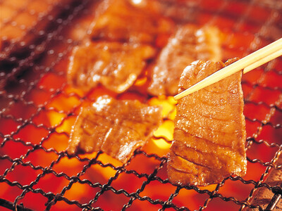 仙台名物「牛たん」。牛1頭からわずか1kgほどしか取れない希少部位の脂の乗った部分を厚切りにし、特注のタレに漬け込み、絶妙な焼き加減で仕上げています。