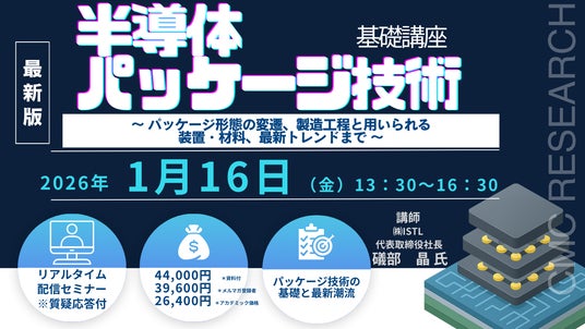 先端パッケージ技術を理解するために、本セミナーではパッケージ技術の進化と要素技術を、基本的な方式や製造方法から解説し、初心者の方にもわかりやすく解説する。