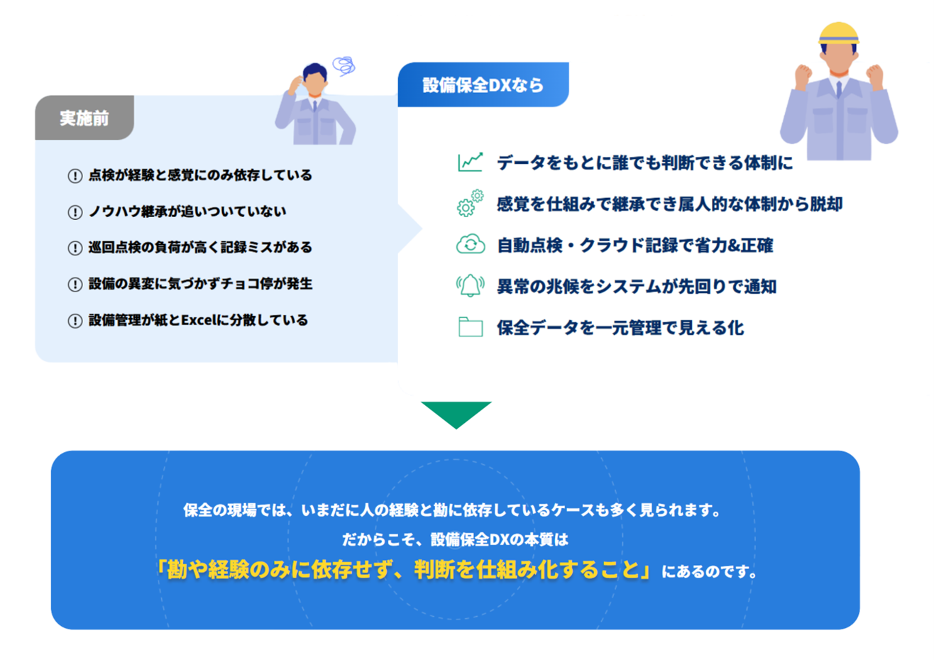 IoT・AIを活用した予知保全や、データに基づく保全管理が注目されている一方で、「情報が分散し、何から取り組むべきかわかりにくい」という声も多く聞かれます。