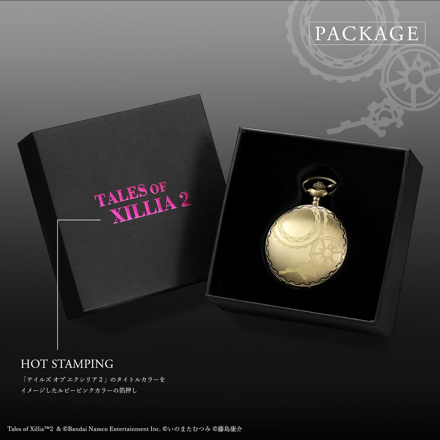 懐中時計の裏側には「テイルズ オブ エクシリア2」のタイトルと、ゲーム発売年に合わせた 特別限定生産 各2012点 を証明するエディションナンバーを刻印しています。
