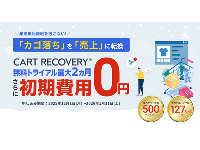この重要な時期に向け、カゴ落ち対策ツール『CART RECOVERY(R)(カートリカバリー)』は、2025年12月1日(月)より無料トライアル最大2か月に加えて、初期費用無料キャンペーンを開催中です。