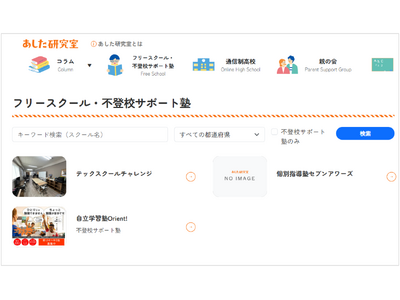 不登校ポータルサイト「あした研究室」のフリースクール・不登校サポート塾紹介ページ