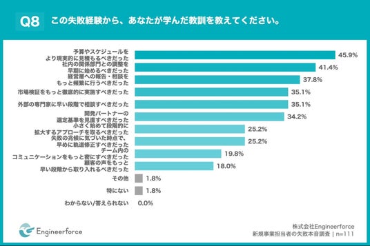 Q8. この失敗経験から、あなたが学んだ教訓を教えてください。(複数回答)」(n=111)と質問したところ、