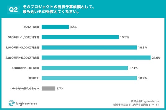 「Q2. そのプロジェクトの当初予算規模として、最も近いものを教えてください。」(n=111)と質問したところ、