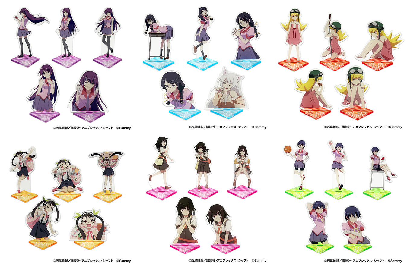 (阿良々木 暦、戦場ヶ原 ひたぎ、羽川 翼、忍野 忍(2種)、八九寺 真宵、千石 撫子、神原 駿河)
