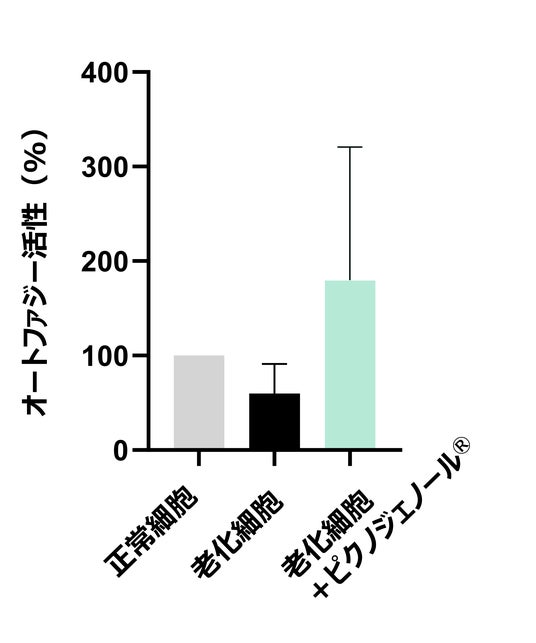 試験方法:ドキソルビシンにより細胞老化を誘導した血管内皮細胞にピクノジェノール(R)を添加し24時間培養した。培養後、LC3の分解量を指標にオートファジー活性を算出した(N=3)。