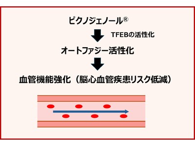 本研究は、ピクノジェノール(R)がオートファジー活性を亢進するという新しい知見を提供しました。また、そのメカニズムの一つとしてTFEBの活性化とそれにつづくリソソーム関連遺伝子の発現上昇が考えられました。このことから、同エキスの血管への有用性にオートファジーの活性亢進が関与している可能性が示唆されました。