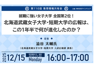 第110回教育情報共有会「就職に強い女子大学 全国第2位!北海道武蔵女子大学・短期大学の広報は、この1年半で何が進化したのか?」