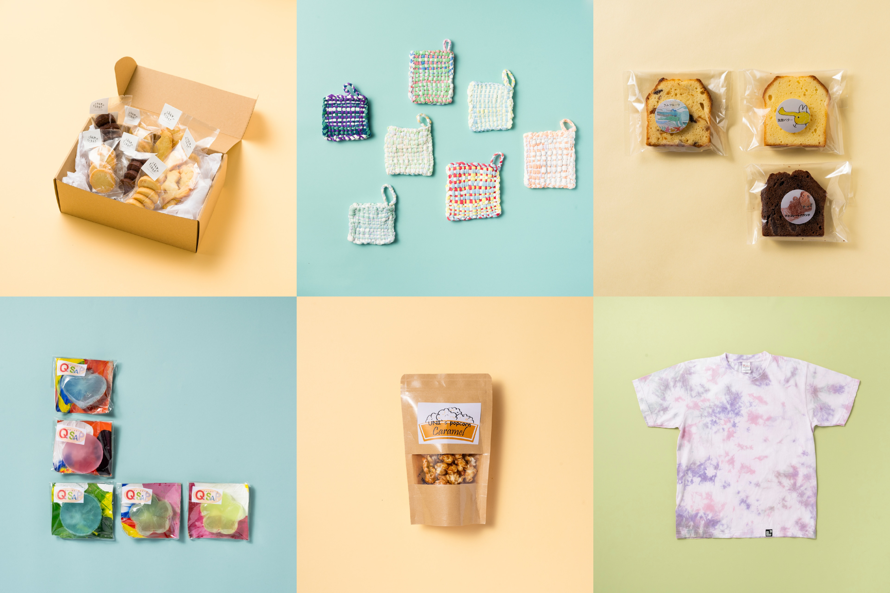 世田谷区内の福祉施設でつくられているプロダクトが多数集まるマーケット。「せせせマルシェ」では、クッキーやパウンドケーキ、手づくりのポップコーンなどの美味しいおやつから、洗剤いらずで環境にやさしい織り雑巾、毎日の暮らしに寄り添う石鹸などの日用品、さらにTシャツやサシェなどの布製品まで、個性豊かなアイテムを多数取り揃えています。また、当日は、〈千歳台福祉園〉による“似顔絵ワークショップ”も開催。
