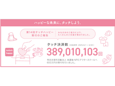 三井住友カード株式会社(本社:東京都江東区、代表取締役 社長執行役員 CEO:大西 幸彦、以下「三井住友カード」)は、キャッシュレス決済を通じたサステナブルな世の中づくりに貢献する取り組みとして、タッチハッピー第14回を実施しました。期間中のタッチ決済数は目標の3億回を大きく上回り、2025年10月31日に特定非営利活動法人 放課後NPOアフタースクールへ600万円の寄付を行いました。