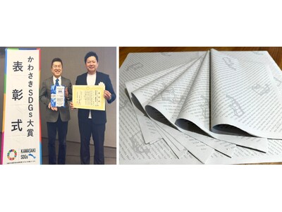 世界最大級の新聞印刷会社 東日印刷株式会社(本社:東京都江東区、代表取締役社長:西川光昭 以下、TONICHI)は、この度、当社のSDGsパートナーであるハヤシ・アンド・カンパニー株式会社(本社:神奈川県川崎市、CEO:林和央、以下ハヤシ・アンド・カンパニー)が、川崎市が主催する「かわさきSDGs大賞2025」において経営部門・最優秀賞を受賞したことをお知らせいたします。この度の受賞は、両社が2024年6月にSDGsパートナーシップ協働宣言をし、ともに研究を重ね製品化した「新聞包装紙」事業において、印刷工程で発生する未使用の新聞用紙を活用したアップサイクルの仕組みが高く評価されたものです。