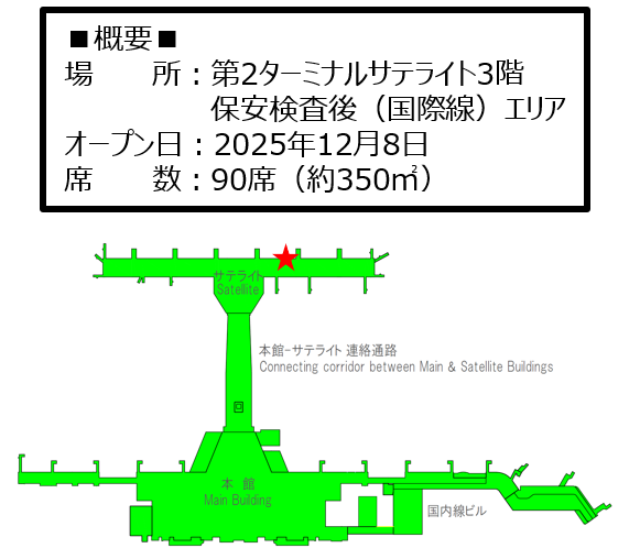成田国際空港株式会社は、2025年12月8日より、第2ターミナル保安検査後(国際線)エリアに新たなラウンジスペースを設置いたします。
