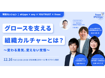 any株式会社(所在地:東京都千代田区、代表取締役CEO:吉田和史、以下:any)は、2025年12月16日(火)に開催されるフリー株式会社主催「freee IPO Day 2025」のカルチャーセッションに代表取締役CEOの吉田和史が登壇いたします。