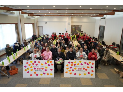当日は、地元・石川県七尾市出身の竹縄親方、先日引退を発表した鳳珠郡穴水町出身の北陣親方、鳳珠郡能登町出身の栃登さん、小松市出身の可貴さんが参加。お集まりいただいた被災者の方々にヒートテックをお渡ししたほか、石川県の食材を使用した手作りの特製ちゃんこ鍋を提供し、交流を深めました。さらに会場では、津幡町出身の横綱・大の里関とLifeWearスペシャルアンバサダーの綾瀬はるかさんからの特別ビデオメッセージをサプライズ放映。日本相撲協会考案の相撲健康体操やハートのオリジナルパネルの作成も行われるなど、心も身体も温まる時間を被災者の方々と過ごしました。