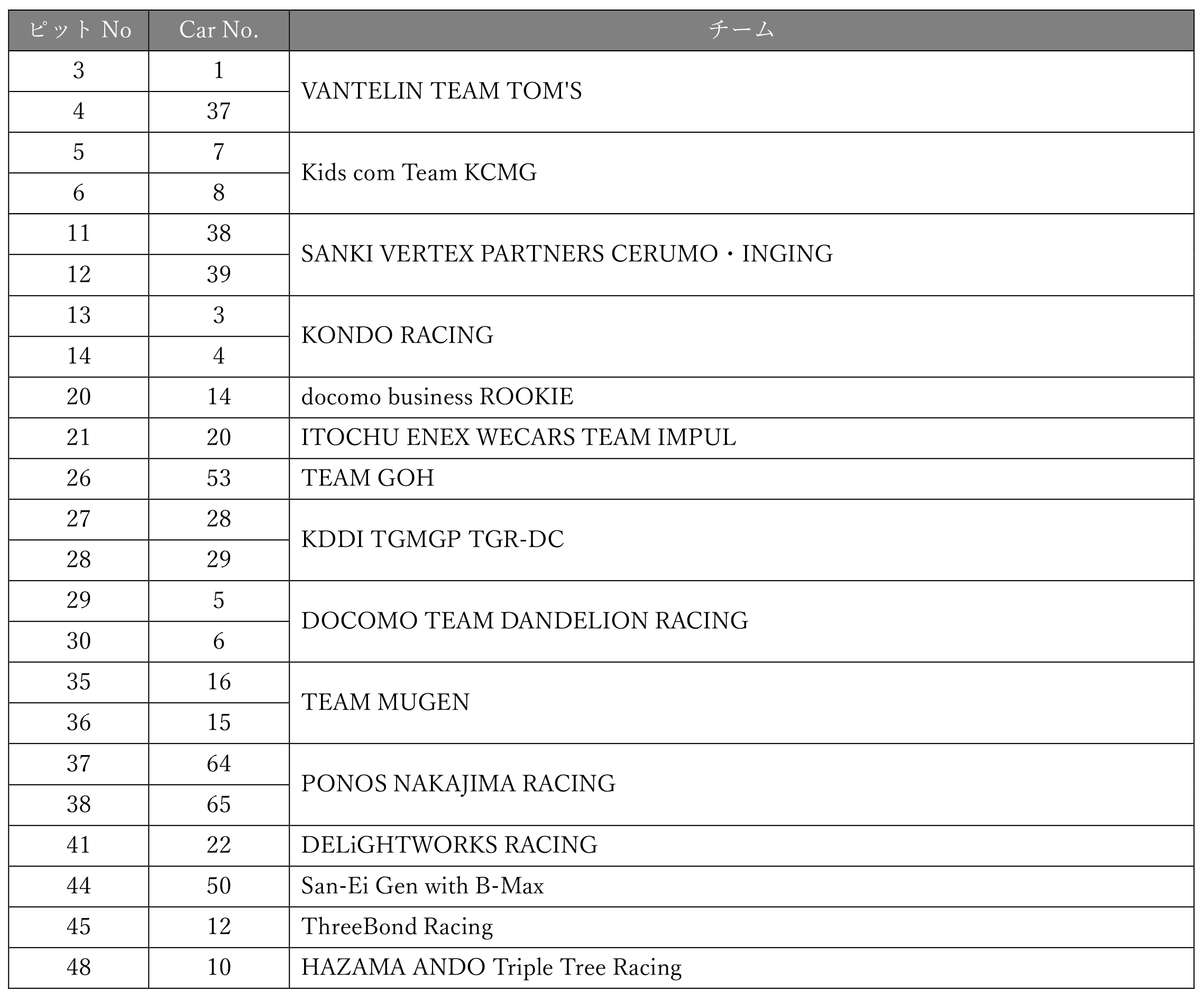 ※ Car No.28小林可夢偉選手はメディアミックスへは参加いたしません。予めご承知おきください。