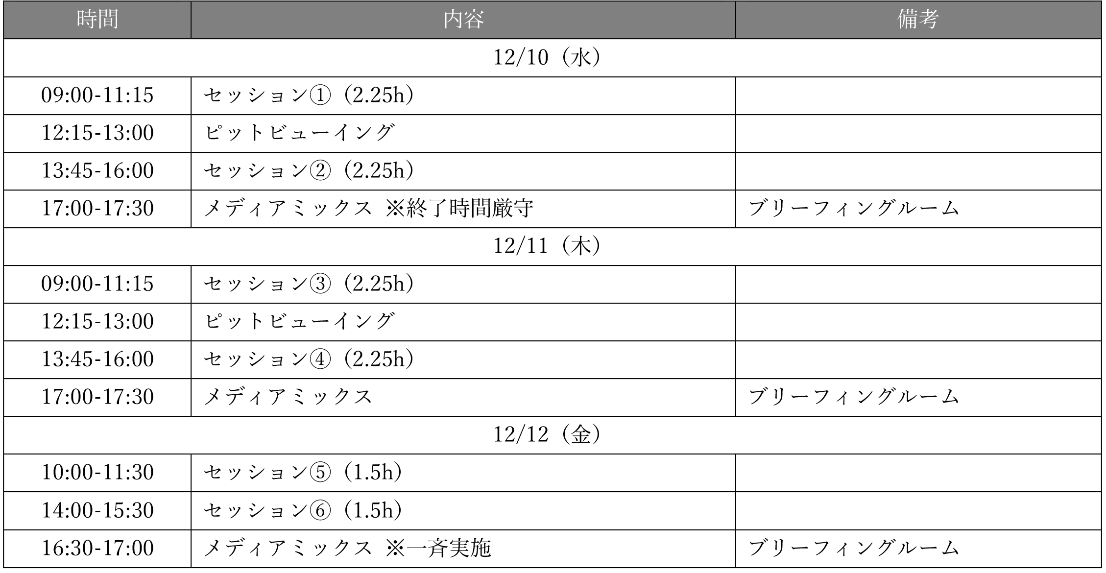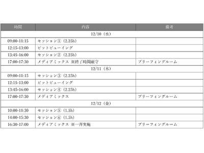 ※ 12/10のメディアミックスは終了時間厳守となります。終了後はラウンジNo.10-11へご移動ください。