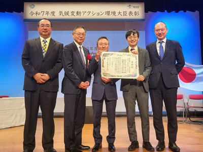 世界シェア 40%以上を誇る産業用冷凍機をはじめ、各種産業機械の製造・販売ならびに各種プラントの設計・施工を手がける株式会社前川製作所(本社:東京都江東区、代表取締役 社長執行役員:前川 真、以下「当社」)は、「空気冷凍システムを活用した需給調整市場向けデマンドレスポンスの実現」について、環境省が主催する「令和7年度気候変動アクション環境大臣表彰」の「先進導入・積極実践部門(緩和分野)」において「気候変動アクション環境大臣表彰」を、株式会社シズオカコールドストレージ(静岡県焼津市、代表取締役社長:長谷川 幸雄)および中部電力ミライズ株式会社(愛知県名古屋市、代表取締役:神谷 泰範)と共同受賞しました。受賞に伴い、12月5日(金)に表彰式が行われました。