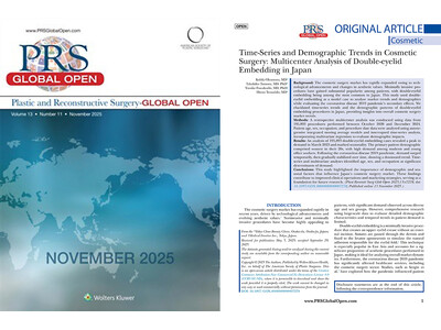 同論文は2025年11月、国際美容外科学術誌「Plastic & Reconstructive Surgery-Global Open」に掲載されました。