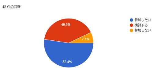 今回のイベントに対し、「参加したい」52%、「検討する」40%と、