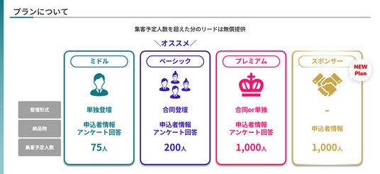 登壇せずに全セミナー申込者のリードを獲得できるプランが登場しました。