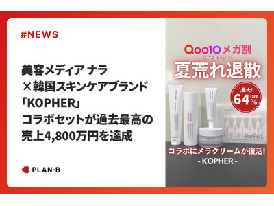 株式会社PLAN-B(東京都品川区、代表取締役:鳥居本真徳)は、韓国の美容整形外科4everが提案するスキンケアブランド「KOPHER(コフェル)」と、当社が運営する美容メディア「ナラ」とのコラボ企画として、限定セットの販売を実施いたしました。