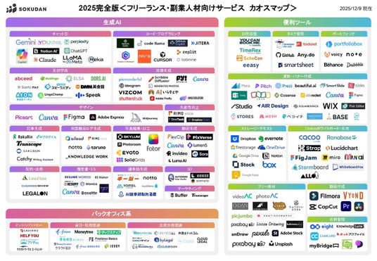 CAMELORS株式会社(本社:東京都渋谷区、代表取締役:田根靖之)は、AI時代に生き抜くための国内No.1の「フリーランス・副業向けサービスカオスマップ-2025年完全版」を公開しました。