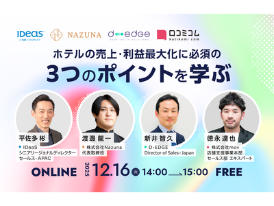 業界最大級のインバウンドビジネスメディア「訪日ラボ」及び 店舗向け集客一元化プラットフォーム「口コミコム」を運営する株式会社mov(代表取締役:渡邊 誠、本社:東京都渋谷区、以下mov)は、12月16日(火)14:00-15:00に宿泊事業者様向けのオンラインセミナーを開催します。参加費は無料です。