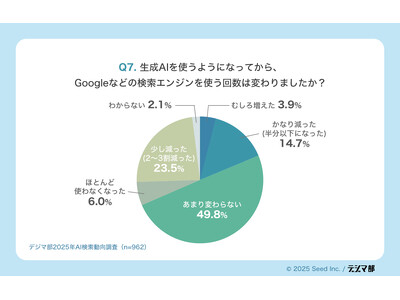 株式会社シード(本社:東京都千代田区、代表取締役:池田 智之、以下「シード」)は、運営するデジタルマーケティング情報メディア「デジマ部」において、全国の10代~70代以上の男女1,504名を対象に「AIによる検索行動の変化に関する意識調査」を実施いたしました。