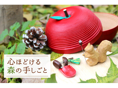 青森の豊かな森に育つブナの木を、独自の技術で美しい木工品へと生まれ変わらせる「BUNACO(ブナコ)」。薄く削ったブナ材をテープ状にして巻き重ねる独自の製法で、木の表情をそのままに、丸いりんごができました。
