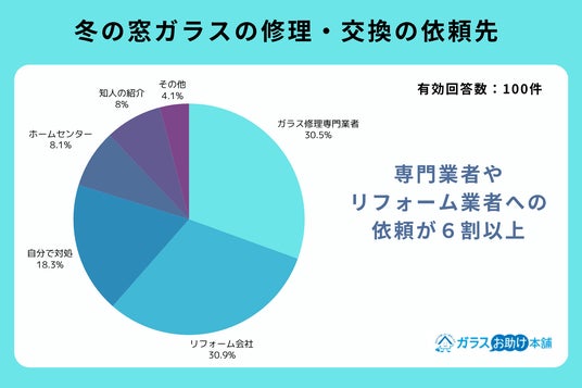 冬の窓ガラスの修理・交換の依頼先は専門業者・リフォーム業者で合計6割