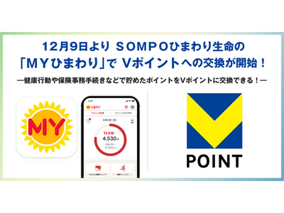 CCCMKホールディングス株式会社(本社:神奈川県横浜市、代表取締役社長兼 CEO:高橋 誉則、以下「CCCMKHD」)と三井住友カード株式会社(本社:東京都江東区、代表取締役 社長執行役員 CEO:大西 幸彦、以下「三井住友カード」)は、2025年12月9日(火)よりSOMPOひまわり生命保険株式会社が運営するスマートフォンアプリ「MYひまわり」において、同社の有効な保険契約にご加入いただいている契約者を対象に、健康行動や保険事務手続きなどで貯まるポイントをVポイントに交換できるサービスを開始いたします。