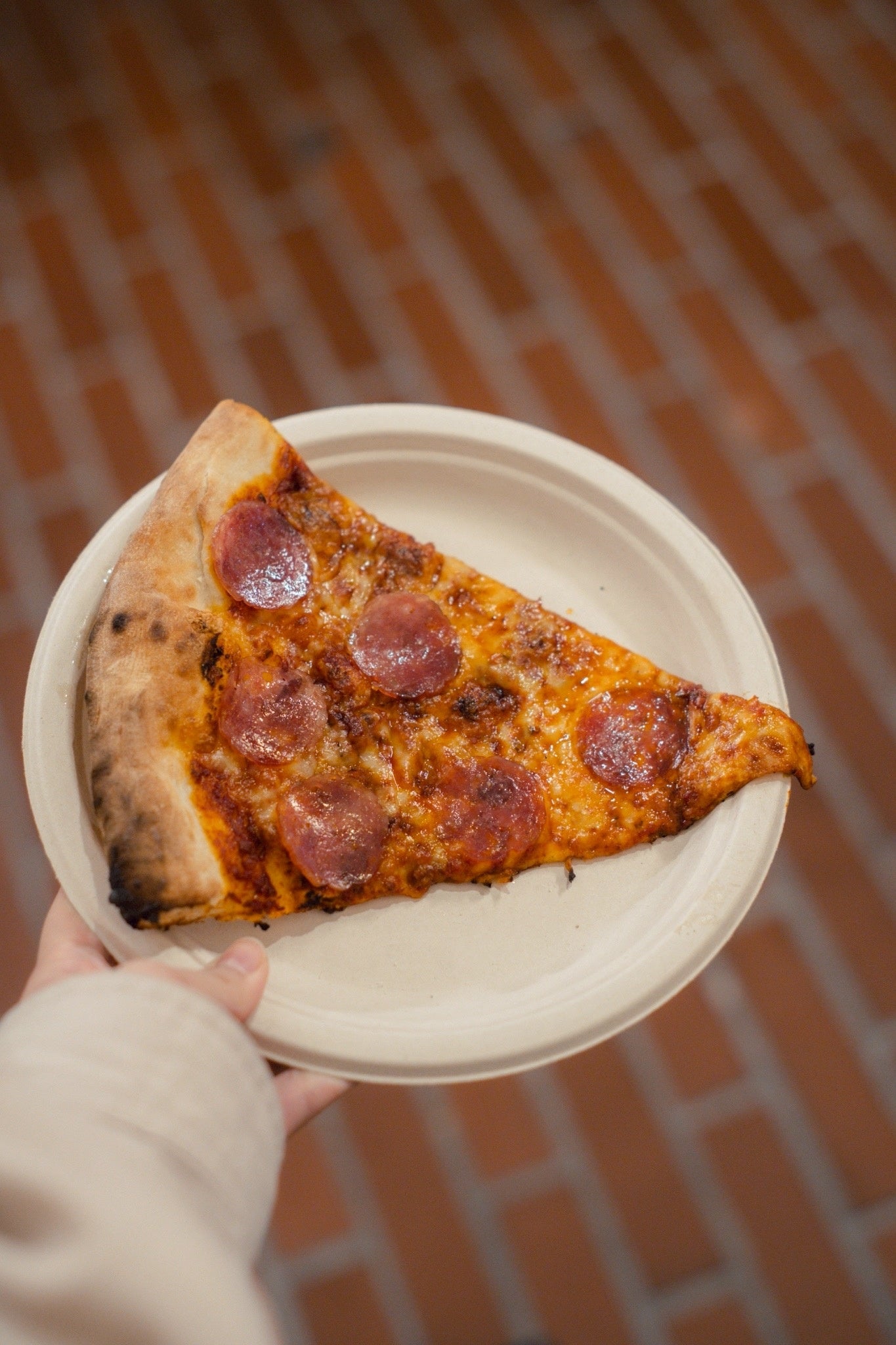 直径約50cmの大きなピザを、ワンスライスから気軽に楽しめるスタイルで提供します。