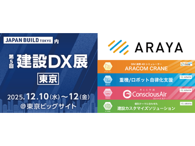 株式会社アラヤ(本社:東京都千代田区、代表取締役社長:金井良太)は、2025年12月10日(水)~12日(金)に東京ビッグサイトで開催される 第5回 建設DX展 東京(JAPAN BUILD 内) に出展いたします。建設向けソリューションを多数展示し、シミュレーションから自律化、空調最適化まで、現場課題に寄り添った最新技術をご紹介します。また、空調最適化AI「ConsciousAir」に関する公式セミナーおよびブース講演も実施します。