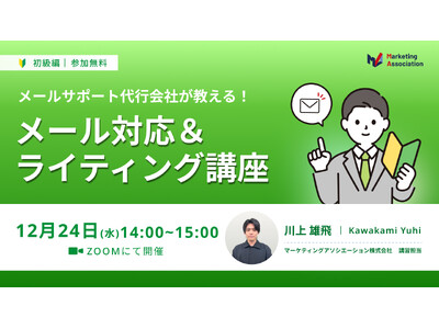 コールセンター代行サービスを提供するマーケティングアソシエーション株式会社(本社:東京都台東区 代表取締役:中園広和)は、2025年12月24日(水)に、ウェブセミナー『【メールサポート代行会社が教える!】メール対応&ライティング講座』を開催します。