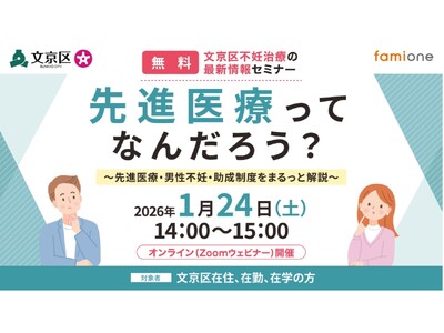 無料オンラインセミナー「先進医療ってなんだろう?~先進医療・男性不妊・助成制度をまるっと解説~」を2026年1月24日(土)に開催します。